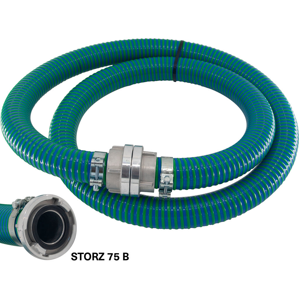 - formstabiler und verschleißfester Kunststoffschlauch mit Spiralverstärkung (Schlauch PVC blau mit grüner PVC Spirale)