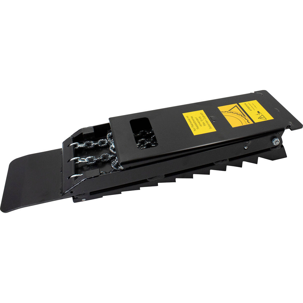 • der Unterlegkeil ist klappbar und daher besonders platzsparend