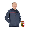 - aufgepatchter Schriftzug FEUERWEHR (15 mm hohe, silber-reflektierende Großbuchstaben) und Wappen SGB LFV auf der rechten Brustseite